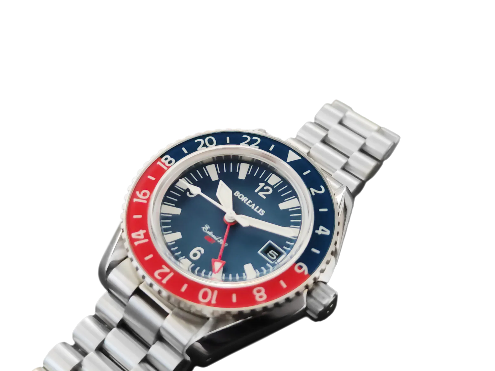 Borealis Estoril 300 GMT Blue Dial Arabic Numbers Date Blue Red Bezel Version C